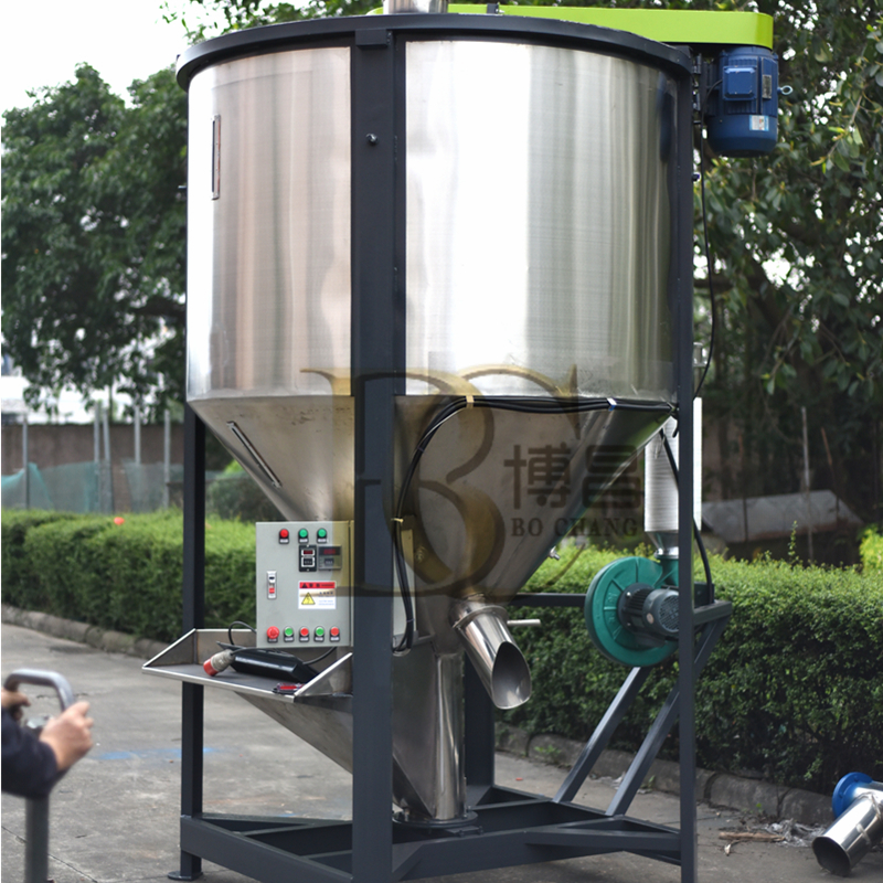 東莞博昌公司塑料顆粒烘干攪拌機系列標準機型為:與物料接觸部分全部為不銹鋼材料制造;中間夾層安裝和特殊保溫材料,因而可達到安全、節能的效果;
